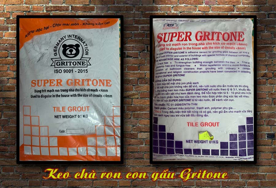 - Keo chà ron SUPER GRITONE là sản phẩm keo trít mạch gốc xi măng cải tiến có thành phần gồm xi măng , cốt liệu chọn lọc, các polymer tổng hợp, phụ gia chống thấm và bột màu.